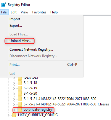 We need following extra steps to change the value in Visual Studio private registry key file.