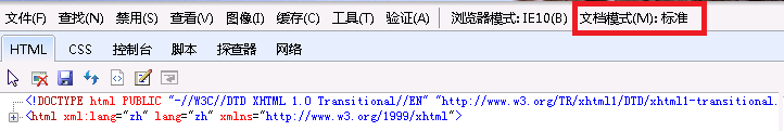 打开 F12 开发者工具查看右上角显示的文档模式。