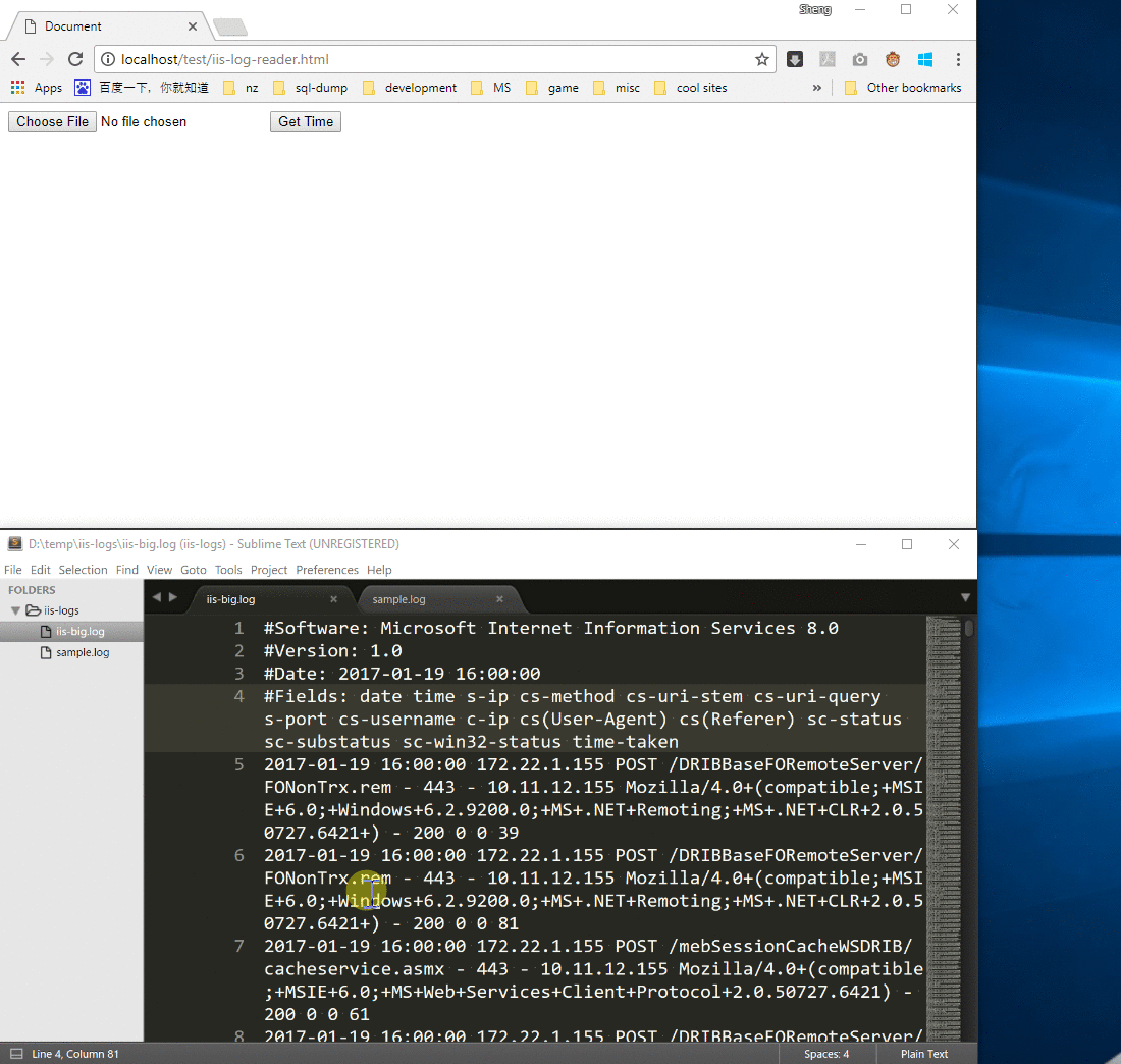 我们的场景很简单,就是使用 JavaScript 来获取某个 IIS 日志的时间范围